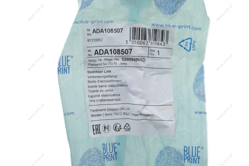 Кронштейн(тяга) стабілізатора з гайкою BLUE PRINT ADA108507 (52089486AA, 52089486AB, 52089486AC)
