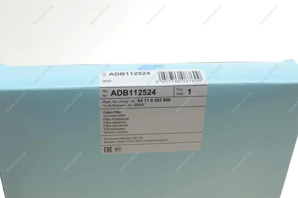 Фільтр салону BMW 3 (G20/G20)/X3 (G01/F97)/X4 (G02/F98) 17-(вугільний) BLUE PRINT ADB112524 (64119382885, 64119382886, 87139WAA01)