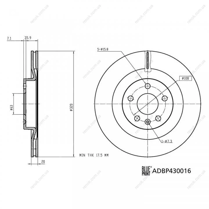 Диск гальм. задн. VOLVO S60 20- BLUE PRINT ADBP430016 (31400778, 31471816, 31471816SK1)