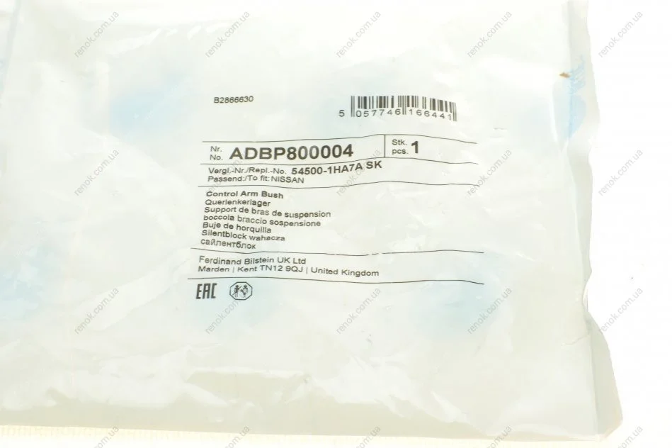 Сайлентблок важеля (переднього/ззаду/знизу) Nissan Micra IV 10- (19x50x53) BLUE PRINT ADBP800004 (545001HA0C, 545001HA0CSK, 545001HA5A)