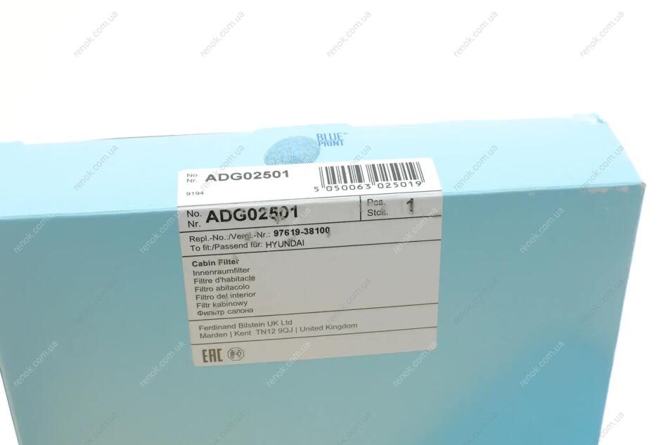 Повітряний фільтр салона BLUE PRINT ADG02501 (9761938100AT, 976193C100, 976193C000)