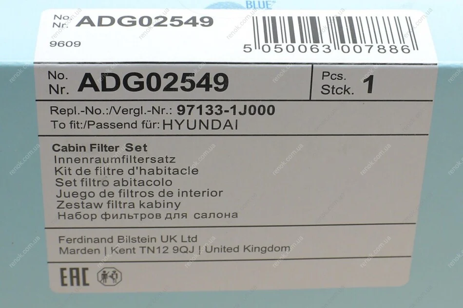 Аналоги "ADG02549 BLUE PRINT":
