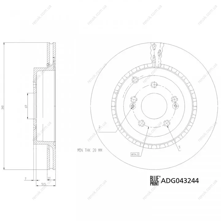 KIA Гальмівний диск задній STINGER (CK) 3.3 T-GDi 17- BLUE PRINT ADG043244 (58411J5500)