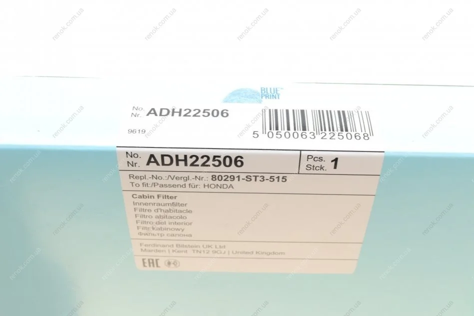 Фільтр салону Honda Civic V-VI/CR-V I/Insight/Rover 400/45 1.0H-2.0D 94-06 BLUE PRINT ADH22506 (06801S10000, 80290ST3E01, 80291S04003)