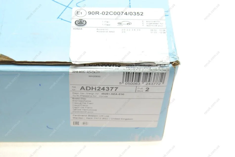 Диск гальмівний BLUE PRINT ADH24377 (45251SEAE30, 45251SEAE30SK1)
