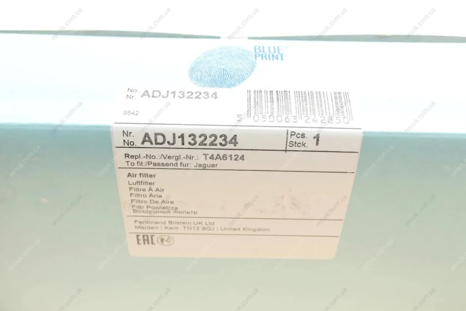 Фільтр повітряний Jaguar XE/XF/Land Rover Range Rover 2.0/3.0D 17- BLUE PRINT ADJ132234 (gx739601ba, t4a6124, lr092258)