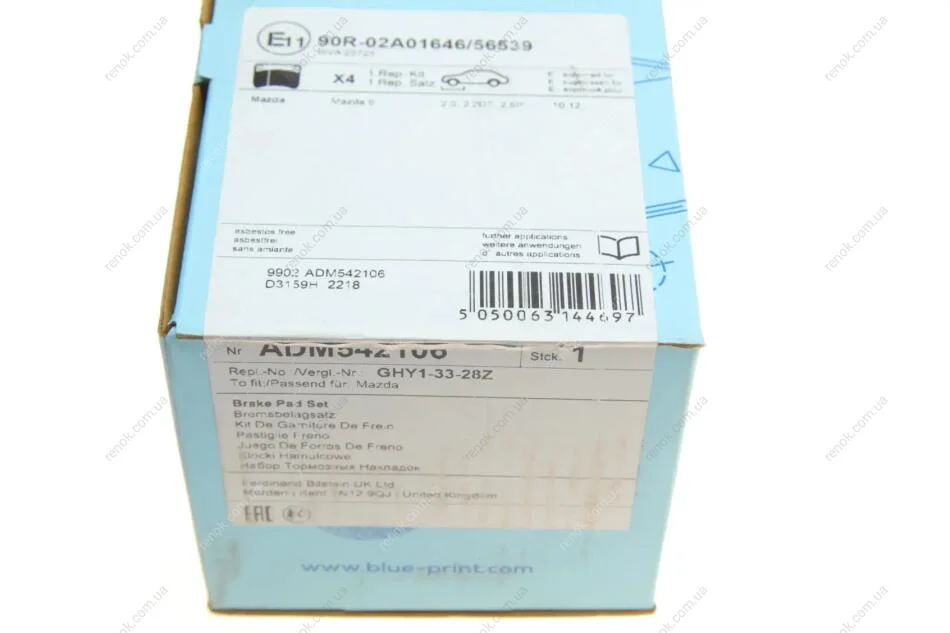 Колодки гальмівні (передні) Mazda 6 12- BLUE PRINT ADM542106 (ghy93328z, ghy93328za, ghy93328zb)