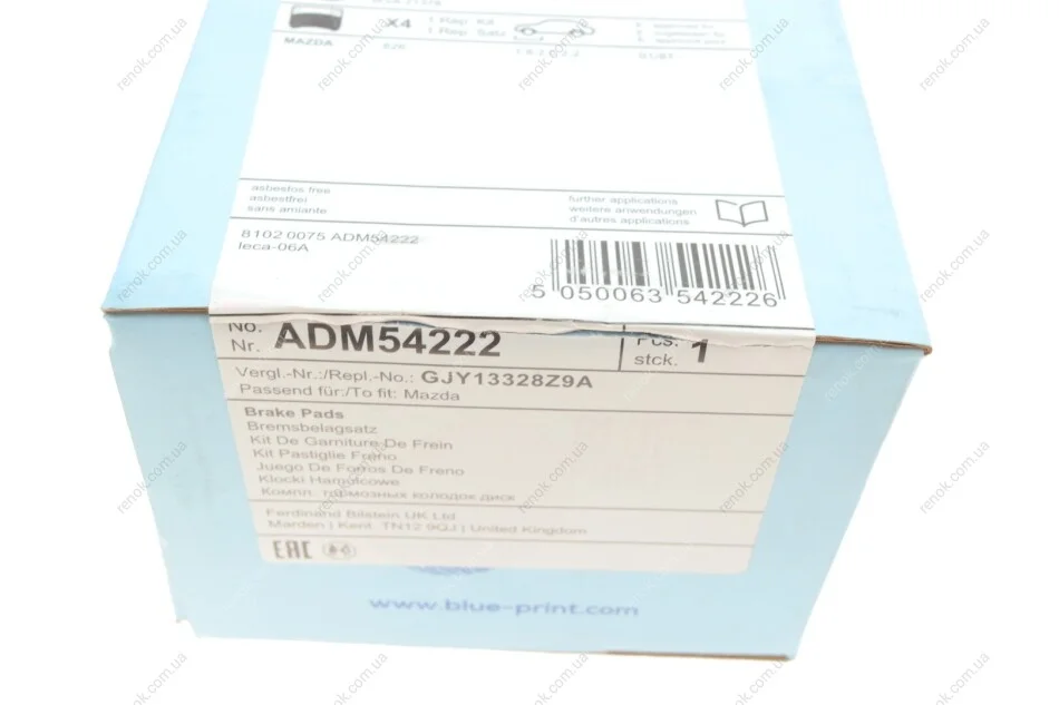 Колодки гальмівні (передні) Mazda 626 87-92 BLUE PRINT ADM54222 (3894048, AY040MA013, GJ2133287B)