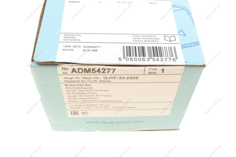 Колодки гальмівні (передні) Mazda 6 02-07 BLUE PRINT ADM54277 (g2YS3323Z, G2YS3323ZA, G2YS3323ZB)