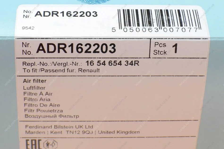 Фільтр повітряний Renault Megane III 08- BLUE PRINT ADR162203 (165467920R, 165465434R, 8200820859)