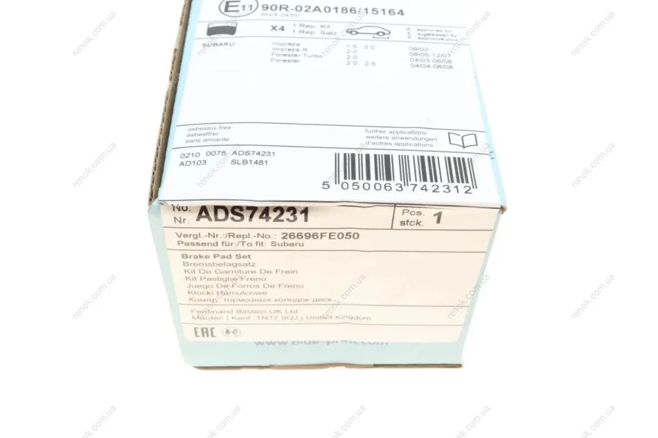 Комплект гальмівних колодок з 4 шт. дисків BLUE PRINT ADS74231