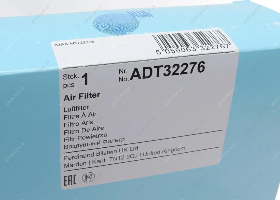 Фільтр повітряний Toyota Corolla 01-09 BLUE PRINT ADT32276