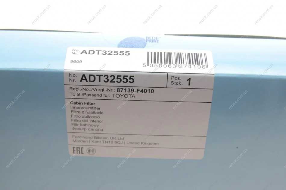 Змінний фільтруючий елемент повітряного фільтра салону BLUE PRINT ADT32555 (87139F4010, 87139YZZ48)