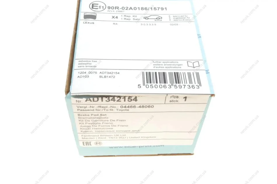 Колодки гальмівні (задні) Lexus RX 03-08 BLUE PRINT ADT342154 (0446648030, 0446648040, 0446648060)