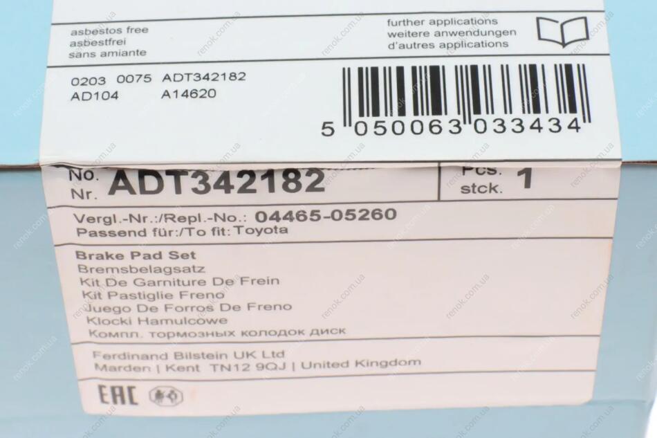 Колодки гальмівні (передні) Toyota Avensis 2.0D/2.2D 08- BLUE PRINT ADT342182 (0446505300, 0446505260, 04465YZZED)