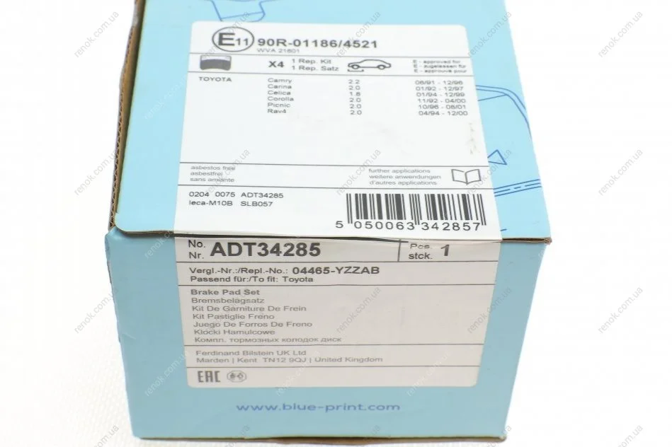 Колодки гальмівні (передні) Toyota Camry 90-02/Corolla 87-02/Rav4 94-00 BLUE PRINT ADT34285 (0446512110, 0446512500, 0446512530)