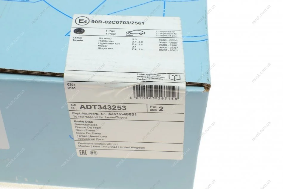 Диск гальмівний (передній) Toyota Highlander 2.4 16V/3.0 24V 00- (296x28) BLUE PRINT ADT343253 (4351248020, 4351248030, 4351248031)