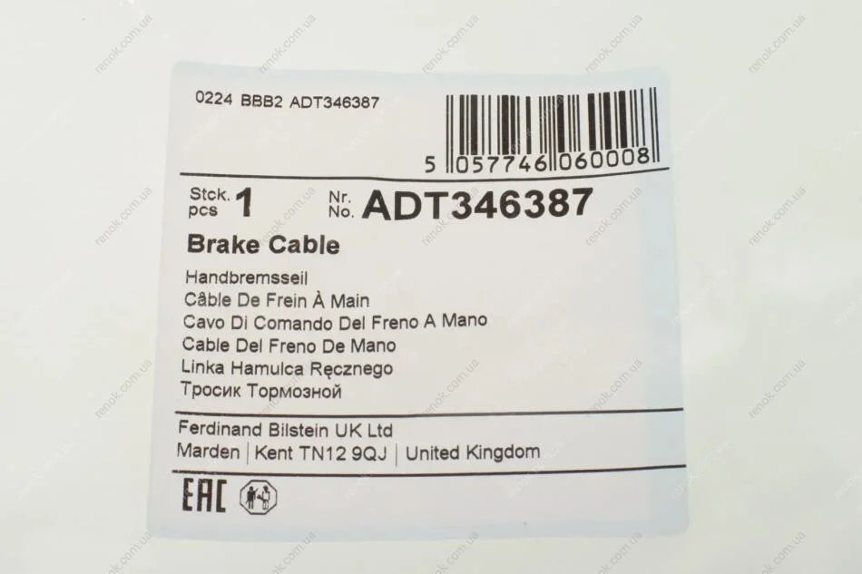 Трос ручника (задній) (R) Toyota Auris 07- (1920/1745mm) BLUE PRINT ADT346387 (4642002121)