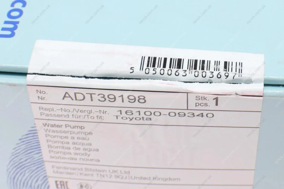 К-т помпи системи охолодження BLUE PRINT ADT39198 (1610029495, 1610009340, 1610009341)