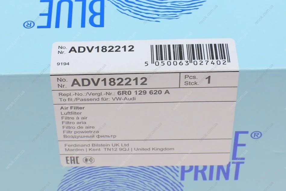 Фільтр забору повітря BLUE PRINT ADV182212 (6R0129620A)