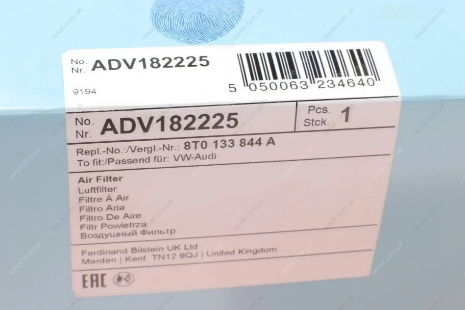 Фільтр повітряний Audi RS4/RS5 4.2 FSI 10-15 (R) BLUE PRINT ADV182225 (8T0133844, 8T0133844A)