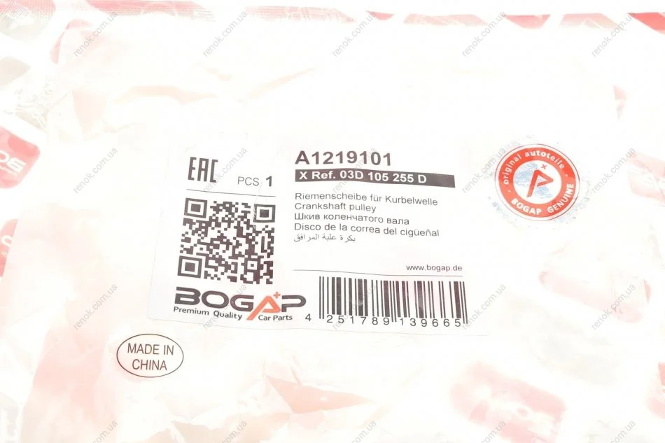 Шків колінвалу Skoda Fabia/Octavia/Roomster/VW Golff/Passat/Touran 01-14 BOGAP A1219101