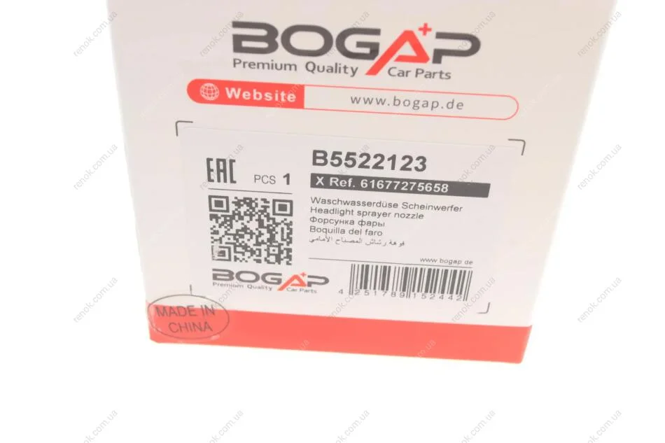 Форсунка омивача фари BOGAP B5522123