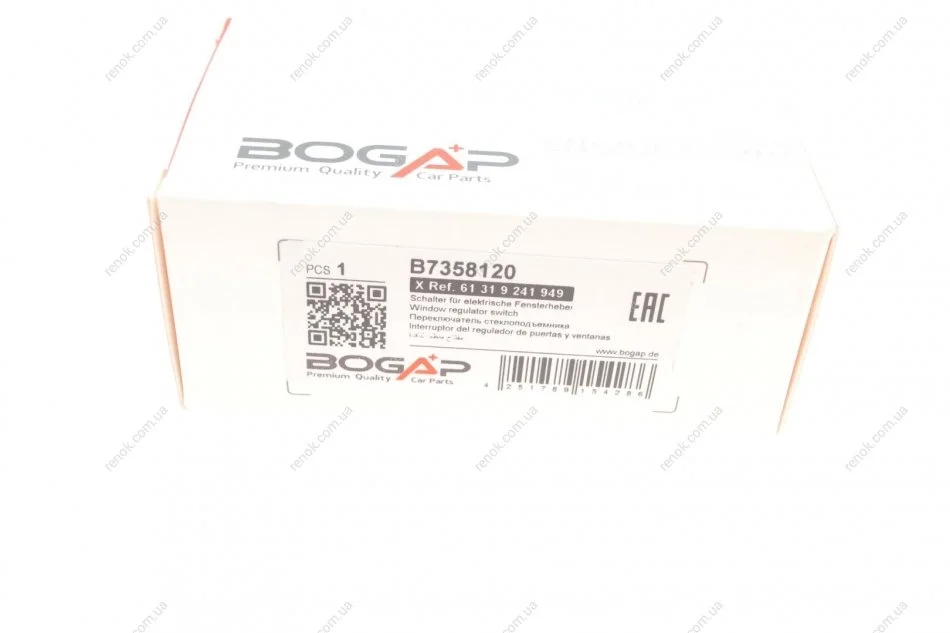 Кнопка склопідіймача (передня) BMW 5 (F07) 09-17 BOGAP B7358120