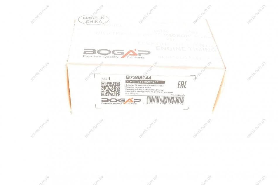 Кнопка склопідіймача BMW 3 (G20/G80/G28)/7 (G11/G12) 15- B46/B47/B48/B57/B58/N63/N74 BOGAP B7358144