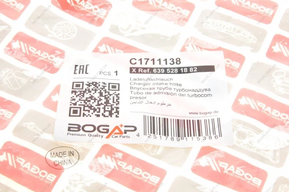 Патрубок інтеркулера (L) MB Vito (W639) OM642 BOGAP C1711138 (a6395281882, 6395281882)