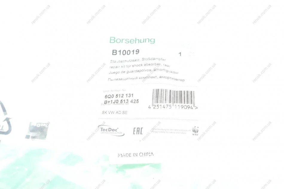 Пильник + відбійник амортизатора (заднього) VW Polo/Skoda Fabia 01- (к-кт 2шт) (OE VAG) Borsehung B10019 (1J0513425, 6Q0512131B)