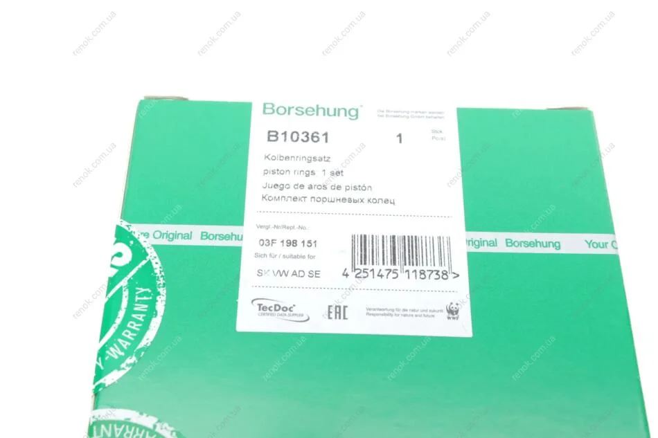 Кільця поршневі Seat Ibiza V/Skoda Octavia/VW Caddy/Golf 1.2TSI 08- (OE VAG) Borsehung B10361 (03F198151)