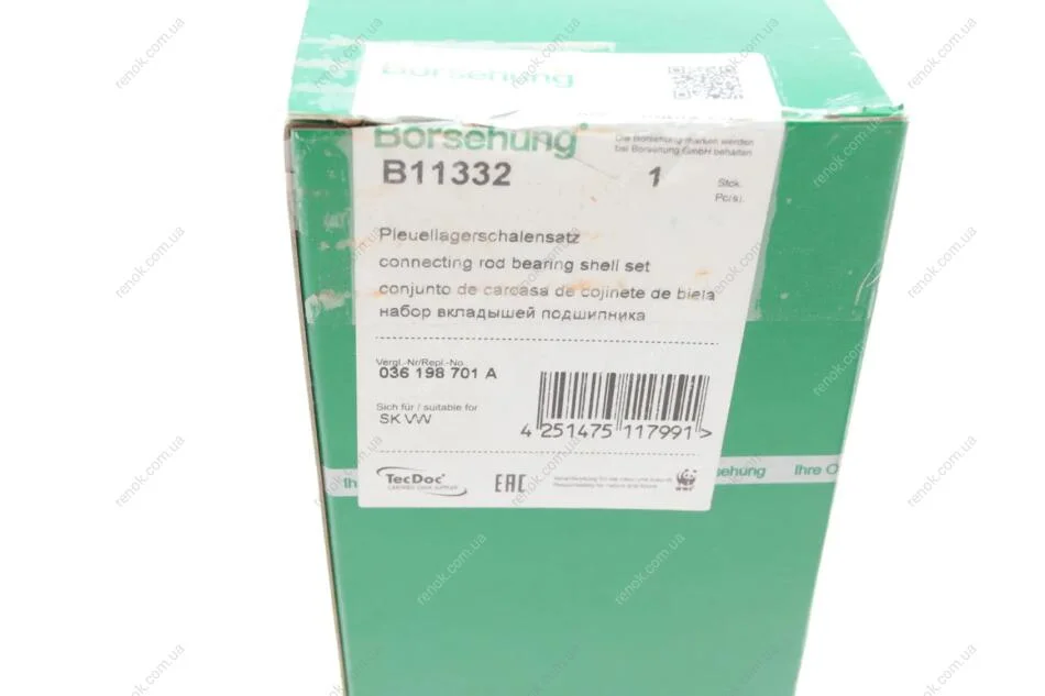 Вкладиші шатунні VW Jetta/Polo 1.6 10- Borsehung B11332 (036198701A)
