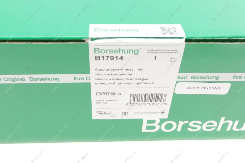 Циліндр зчеплення (робочий) Audi A3/TT/Seat Ibiza/Leon/Skoda Octavia/VW Golf/Bora 96-10/T4 90-03 Borsehung B17914 (1J0721261J, 1J0721261L, 1J0721261M)