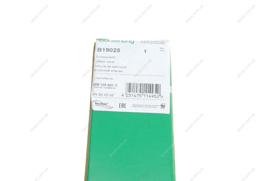 Клапан впускний Borsehung B19025 (058109601C, 058109601T)