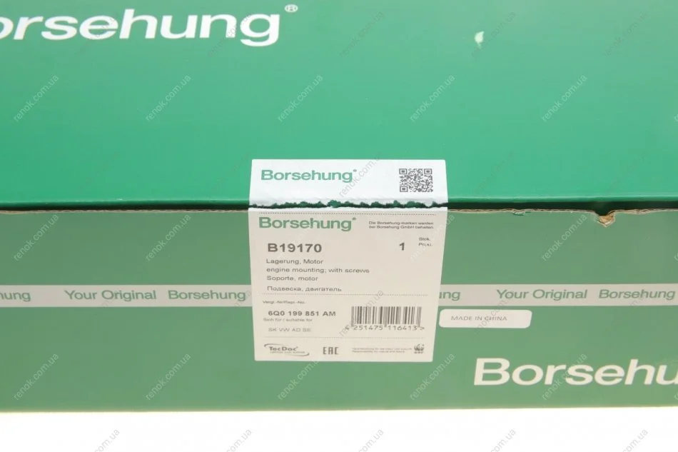 Подушка двигуна (задня) Skoda Fabia 99-/Roomster 06-10/VW Polo 1.4TDI/1.9TDI 00- (OE VAG) Borsehung B19170 (6Q0199851AP, 6Q0199851AM, 6RF199851C)