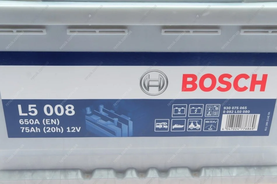 Акумуляторна батарея 75Ah/650A (278x175x190/+R/B13) Водний транспорт/Кемпінг/Гольф-кар BOSCH 0 092 L50 080 (vyc1510655aa)