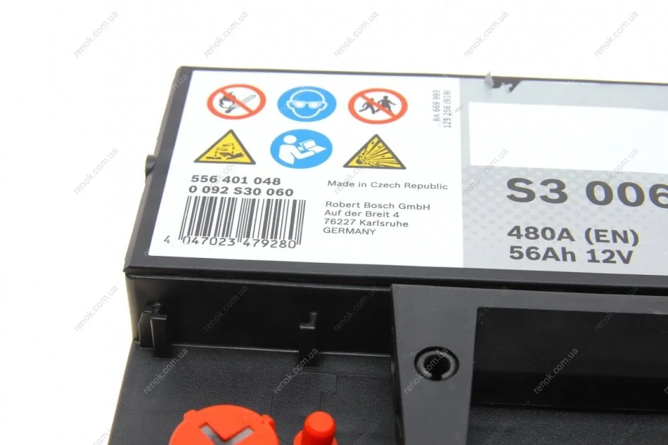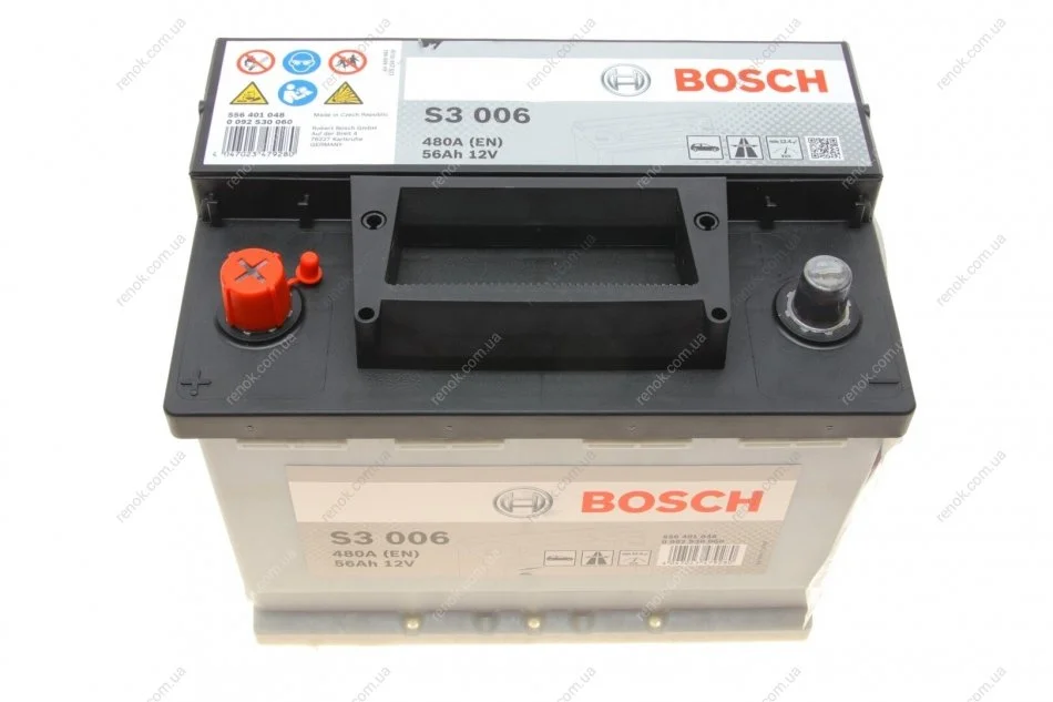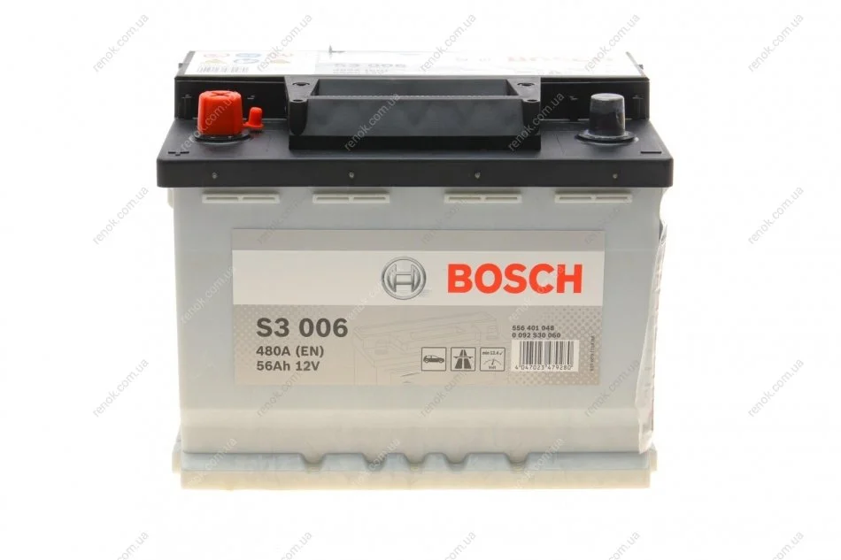 Акумулятор S3 56Ah, EN 480 лівий "+" 242х175х190 (ДхШхВ) BOSCH 0 092 S30 060 (46227868, Z155565, Z255565)