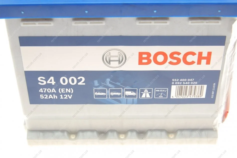 Акумулятор S4 Silver 52Ah, EN 470 правий "+" 207x175x190 (ДхШхВ) BOSCH 0 092 S40 020 (7711238596, 7711222779, 7711222756)