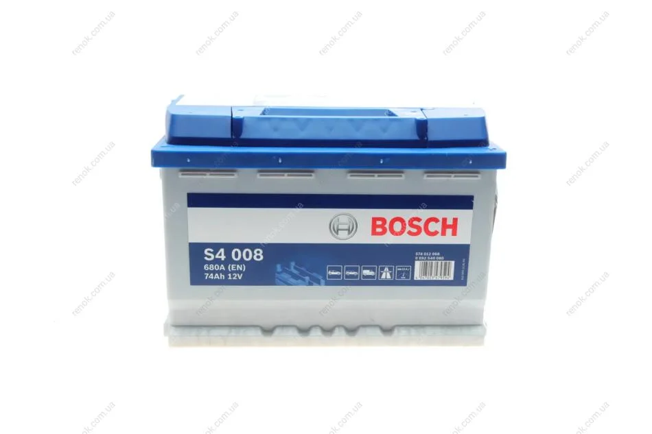 Акумулятор S4 Silver 74Ah, EN 680 правий "+" 278х175х190 (ДхШхВ) BOSCH 0 092 S40 080 (8200377288, 8200377287, 7905525567)