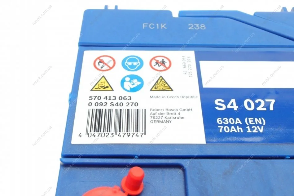 Акумулятор (J) S4 Silver 70Ah, EN 630 лівий "+" 261x175x220 (ДхШхВ) BOSCH 0 092 S40 270 (560017, 560016, 560013)