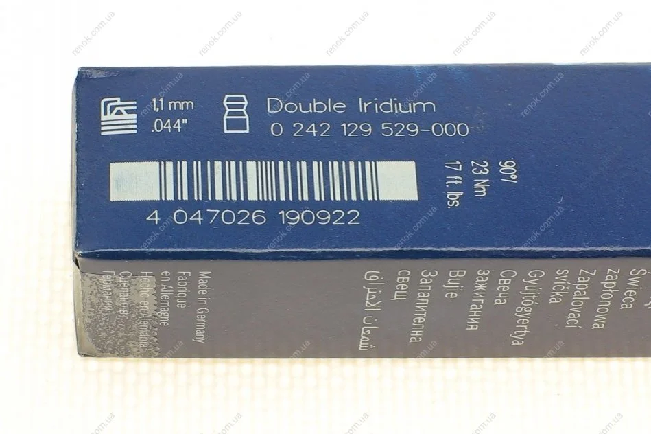 Свічка запалювання: жорстке SAE-підключення, Іридієвий електрод, 1 електрод маси, с помехоподавлением. 5 кОм, з плоским сідлом