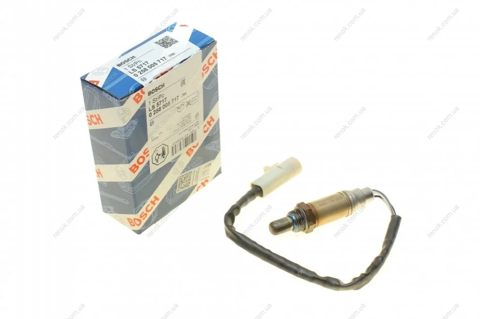 Лямбда-зонд (кількість дротів 4, 422мм) FORD COUGAR, FIESTA IV, FIESTA V, FIESTA VI, FOCUS I, FUSION, MAVERICK, MONDEO II, MONDEO III FORD USA EXCURSION, EXPEDITION, EXPLORER 1.25-6.8 01.93- 0 258 005 717 BOSCH 0258005717 (1094175, 1123897, 1677293)