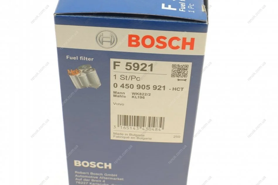 Фільтр паливний Volvo S40 I/S60 I/S80 I/V40/V70/XC70/XC90 I 1.6-4.4 95-14 BOSCH 0450905921 (30620512, 306205120)