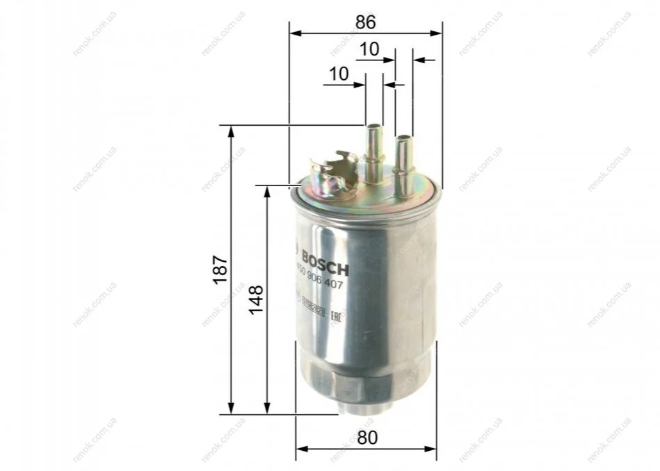 Фільтр паливний Ford Connect 1.8Di/TDCi (55kw) 02- (під клапан) BOSCH 0450906407 (1150868, 1230621, 2S4J9155AA)