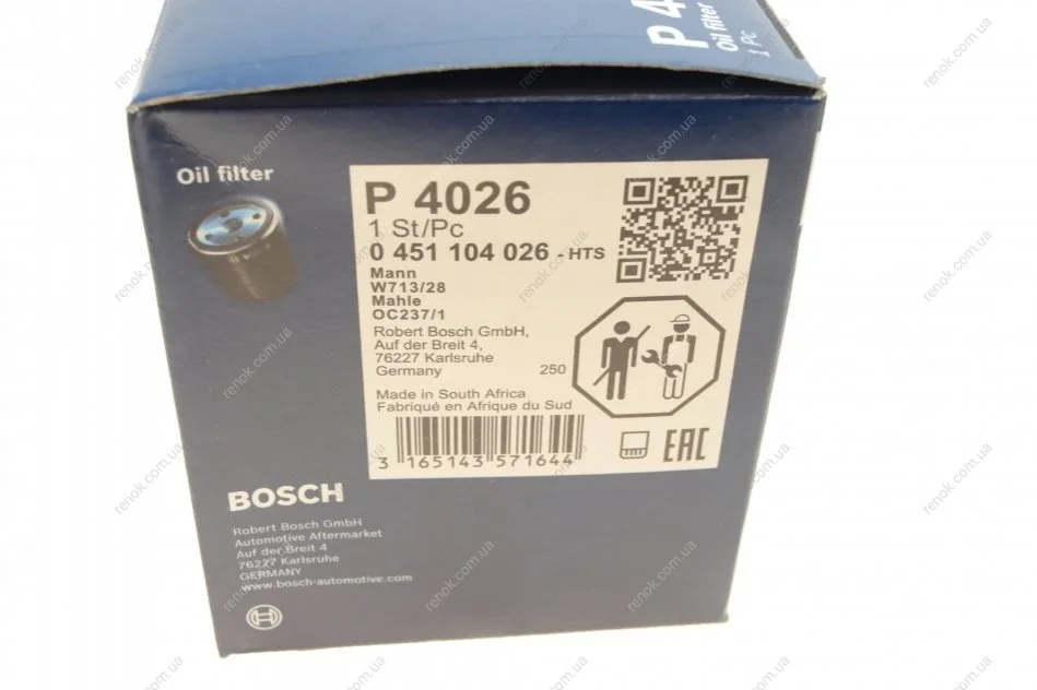 Фільтр масляний Land Rover Freelander 1.8 98-06 BOSCH 0451104026 (8671000496, CDU1268, GFE280)