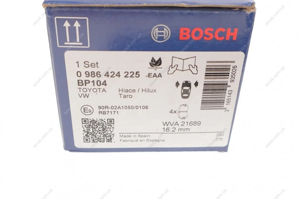 ГАЛЬМІВНІ КОЛОДКИ, ДИСКОВІ 0 986 424 225 BOSCH 0986424225 (0446523040, 0446526030, 0446526040)