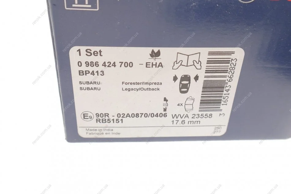 Комплект гальмівних колодок, дискове гальмо BOSCH 0 986 424 700 (26296AC041, 26296AE160)