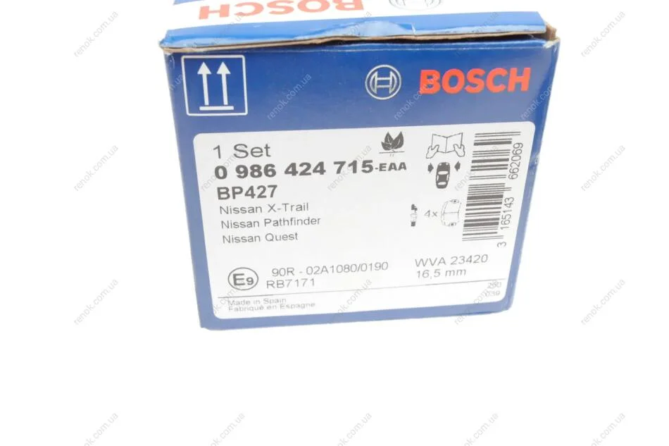 Колодки гальмівні (передні) Nissan X-Trail 01-13/Pathfinder 95-05 BOSCH 0 986 424 715 (410600W785, 410600W786, 410600W7X5)