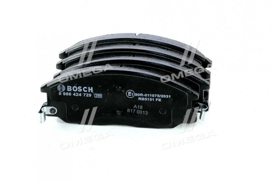 Колодки гальмівні (передні) Hyundai Santa Fe/Trajet 00-12/Ssangyong Actyon/Kyron 05-/Rexton 02- BOSCH 0986424729 (48130091A0, 581014AA26, 5810126A30)